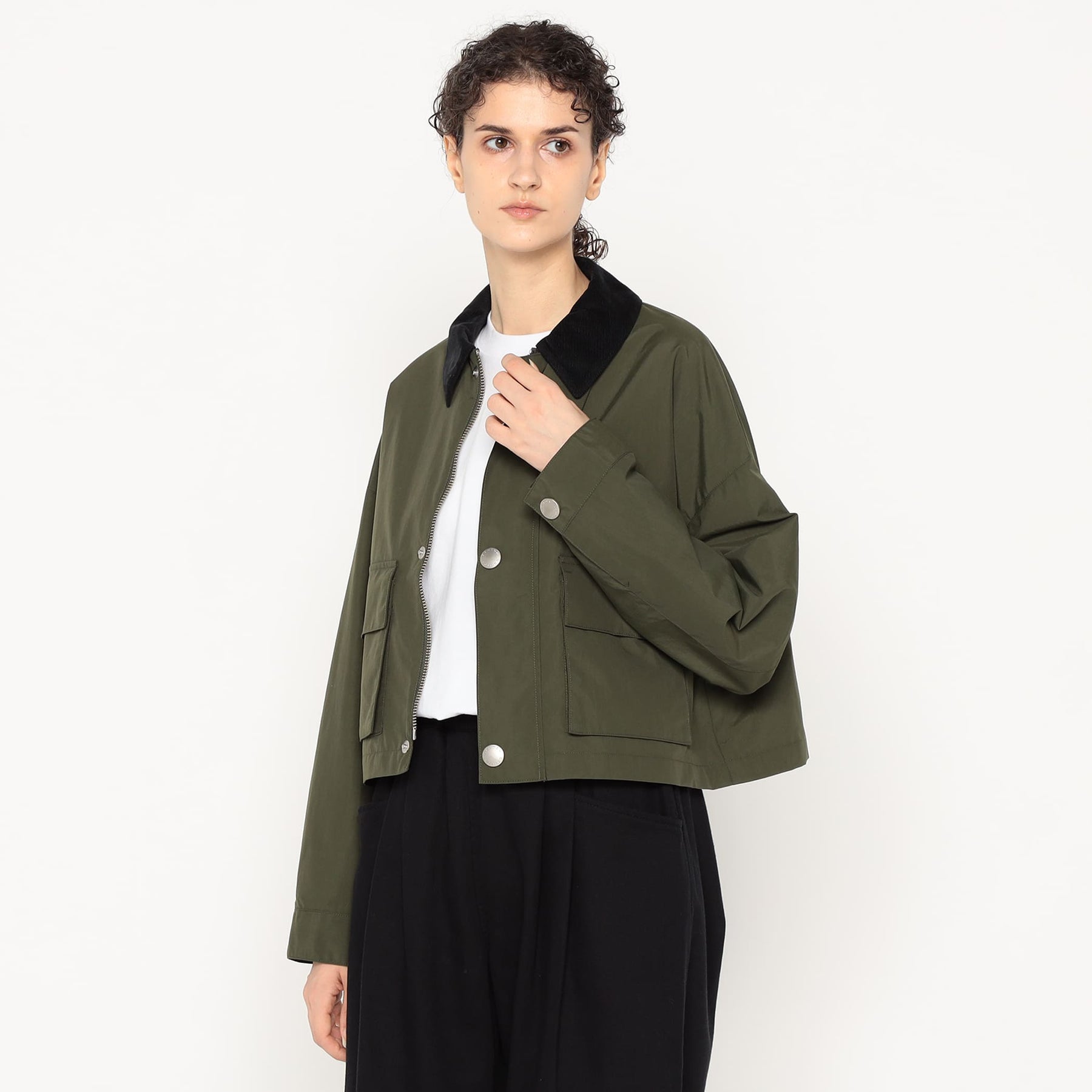 • コーデュロイ襟を配したショート丈ジャケット