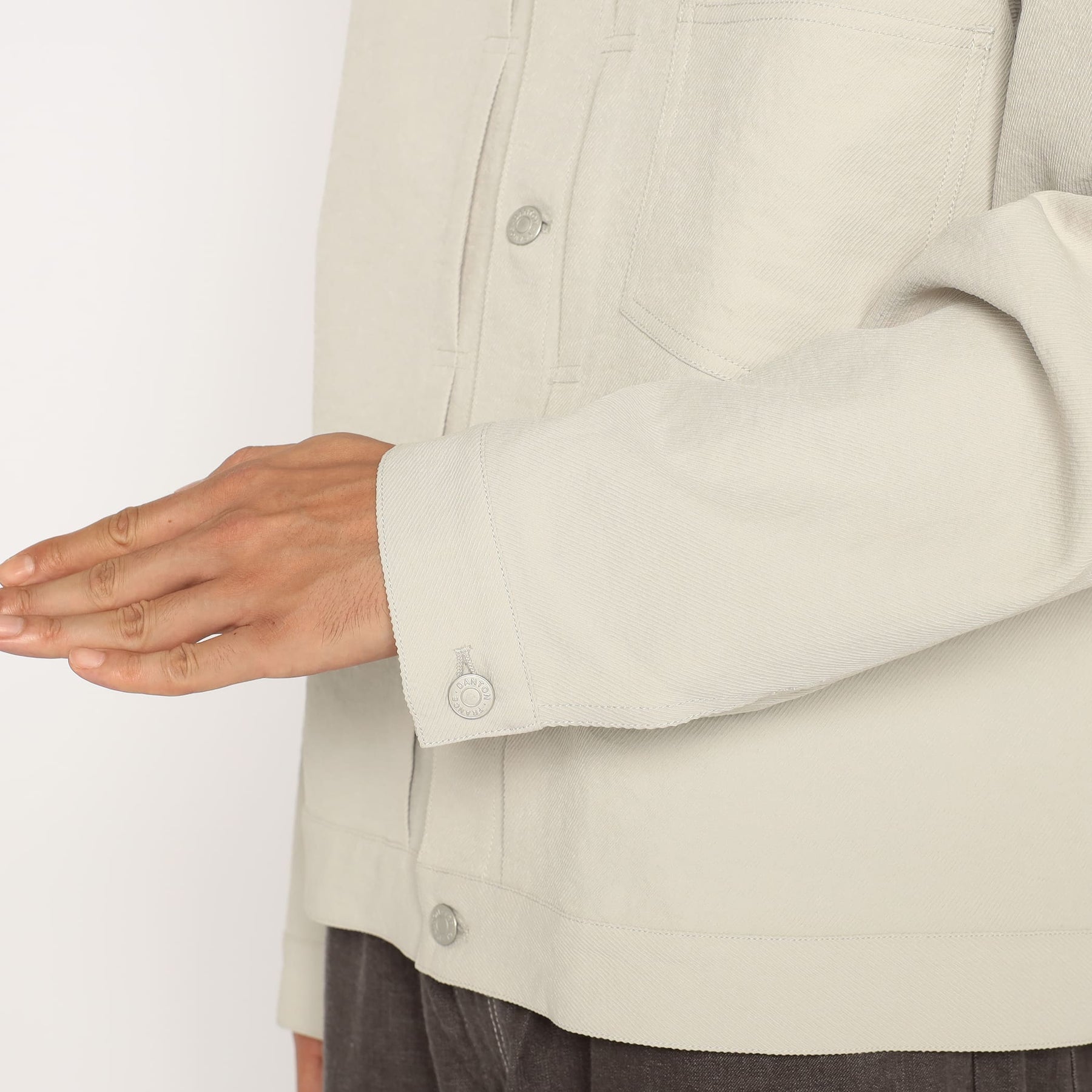 • Tuck buttons engraved with the brand name