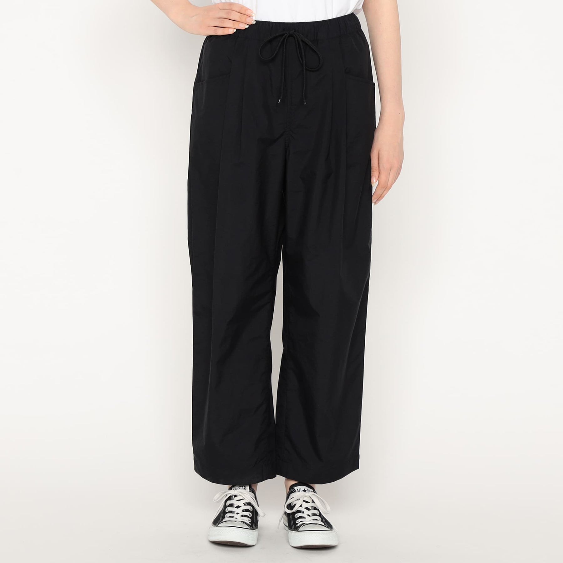 Design featuring deep double pleats and L-shaped front pockets