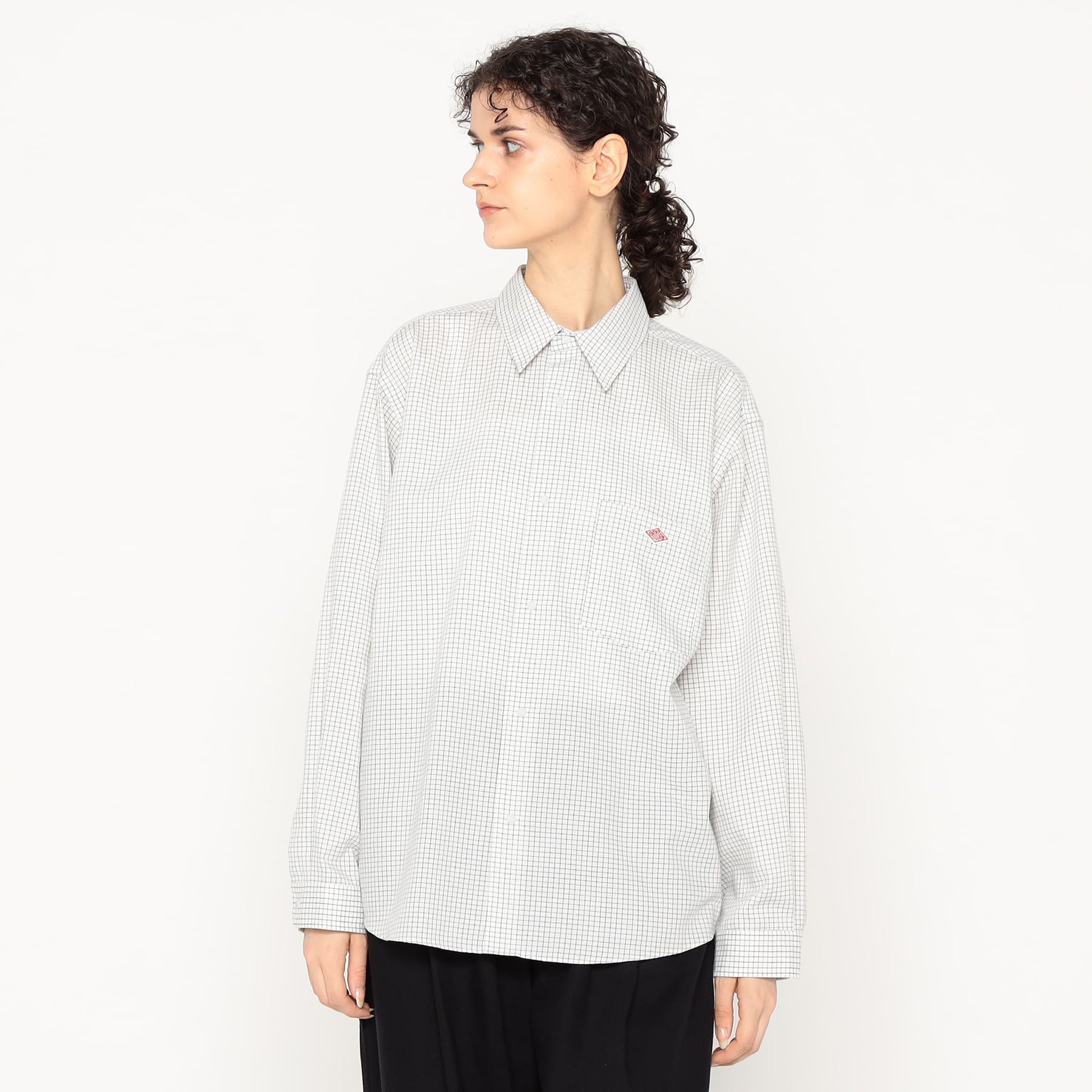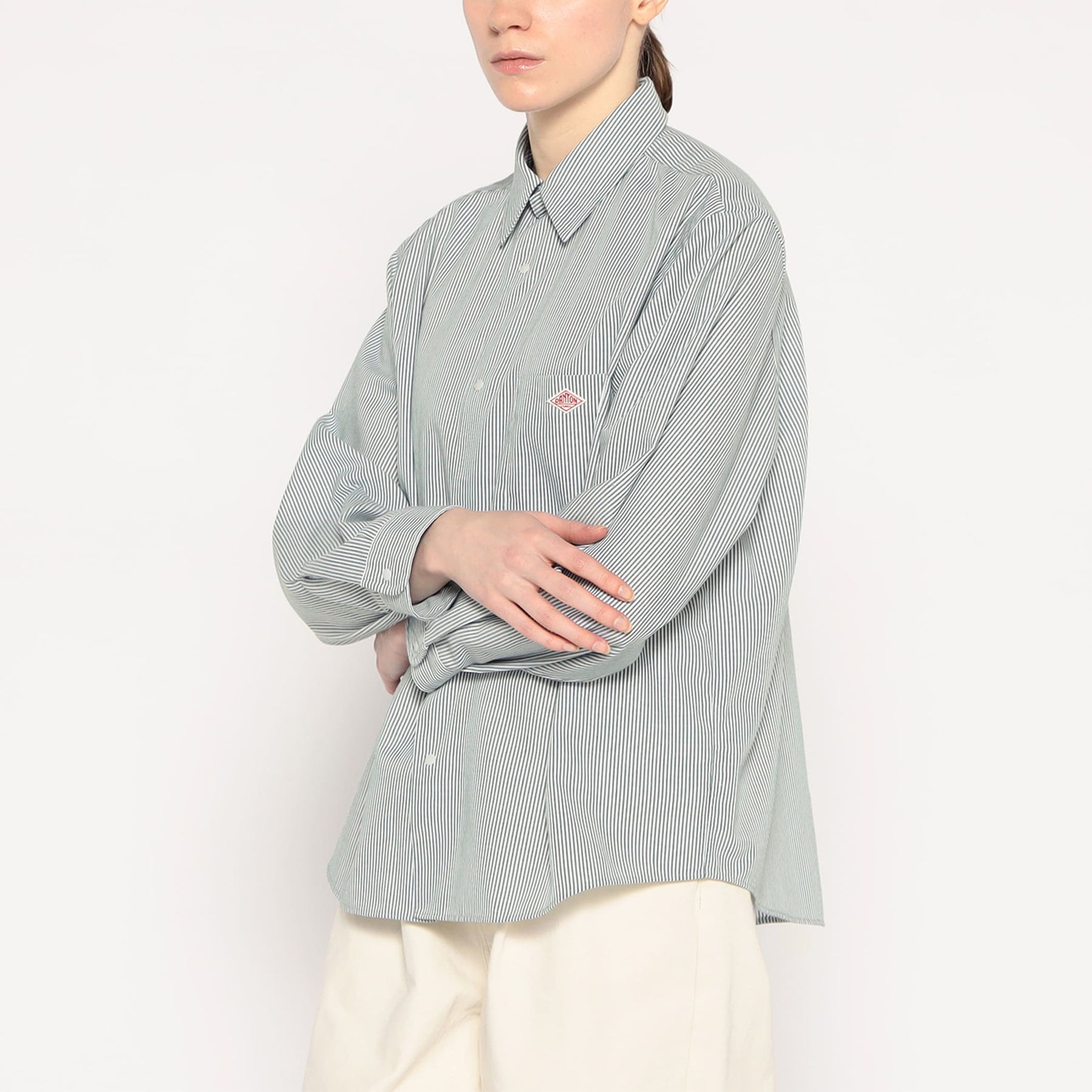 - シンプルなレギュラーカラーの長袖シャツ